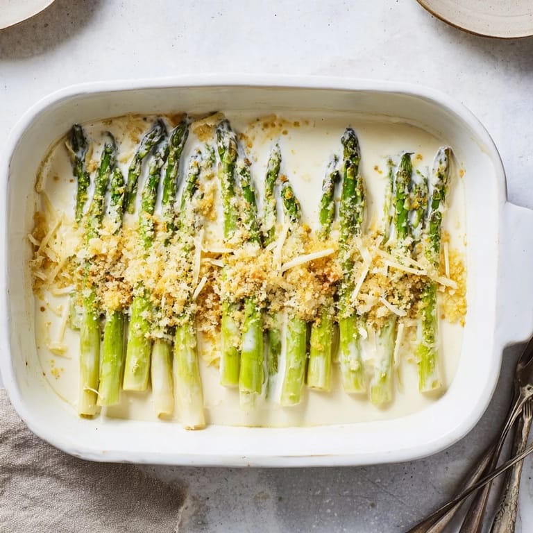 Save The first time I made this asparagus casserole, it was actually supposed to be a simple side dish for Easter dinner. But between the aroma of that Gruyère cream sauce bubbling away and the golden breadcrumbs catching everyone's attention, it ended up stealing the entire show. My aunt leaned over during dinner and whispered, 'You're making this every year now, right?' and honestly, I wasn't about to argue with that.