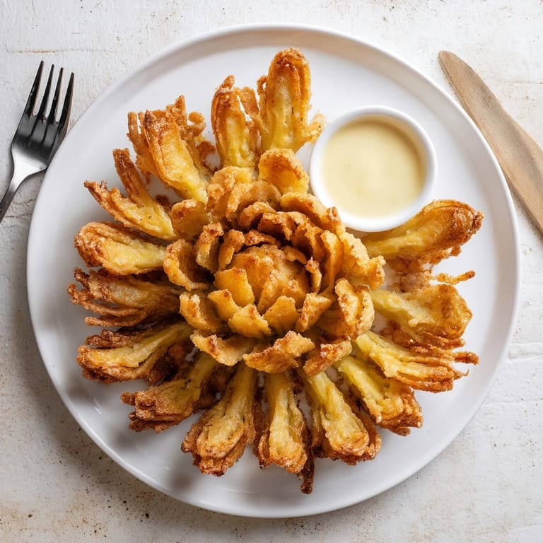 Save The first time I saw a blooming onion arrive at our table, I actually laughed out loud. It looked like someone had performed magic on a humble vegetable, turning it into this spectacular golden flower that everyone reached for at once. Now I make them at home, and watching guests eyes light up when that sizzling masterpiece hits the table never gets old. My kitchen smells like carnival food for days afterward, and honestly, I am completely okay with that.