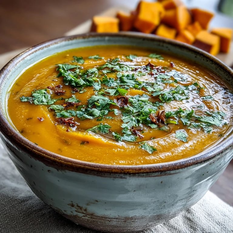 I made this for my partner during one of those seasons when we were both running on empty—work stress, weather shifts, that general fatigue that settles in when you forget to slow down. They came home to bowls of this burnished orange soup, and I watched them take the first spoonful with that expression of someone rediscovering what warmth actually tastes like. We sat there for twenty minutes without talking much, just eating and letting the spices do their gentle work.