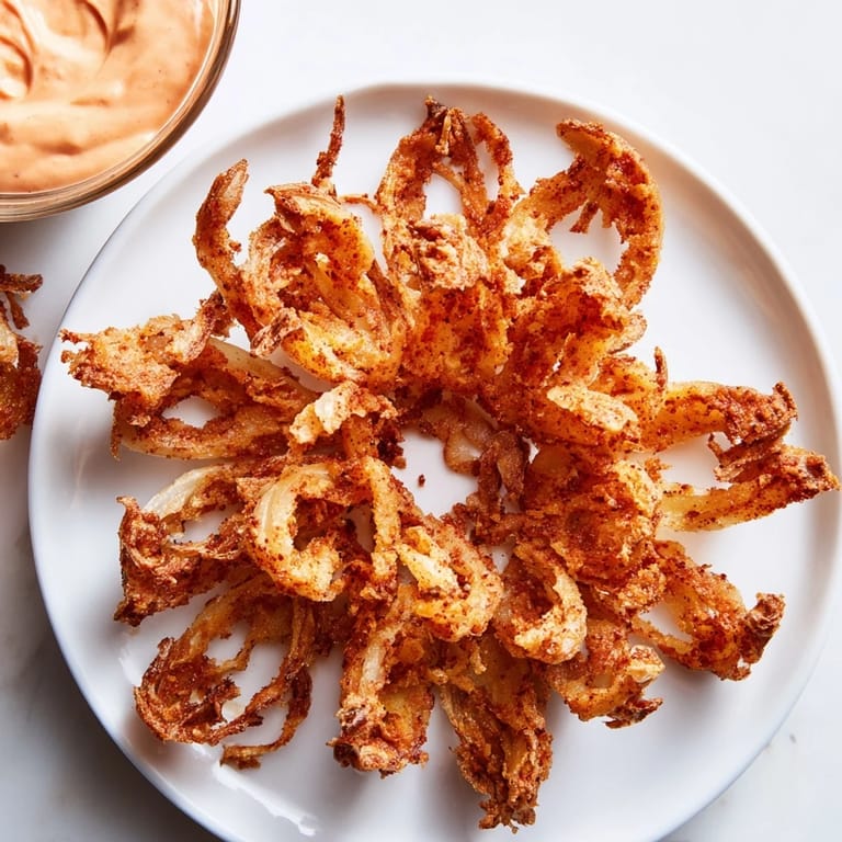Save The kitchen smelled incredible when I first tried making these golden onion petals. My roommate kept wandering in, drawn by the sizzle and that irresistible fried aroma. We ended up eating half the batch straight from the paper towels, burning our fingers and not caring one bit.
