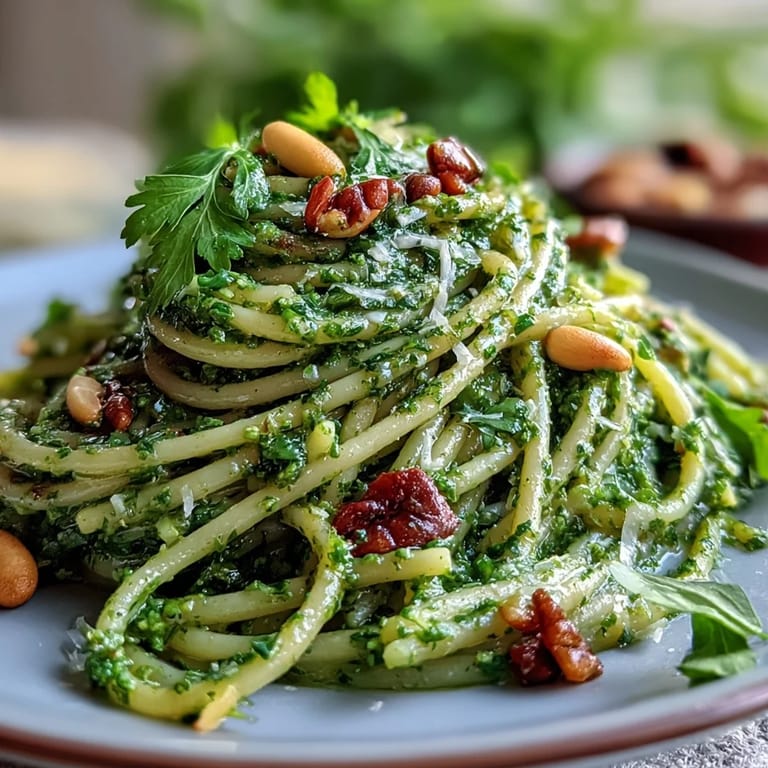 Feel free to substitute walnuts or almonds for pine nuts if preferred or if allergies are a concern. For a vegan version, omit the Parmesan cheese or replace it with nutritional yeast to maintain a cheesy flavor. Fresh basil leaves are optional and add a sweeter dimension, but the pesto is flavorful without them as well.