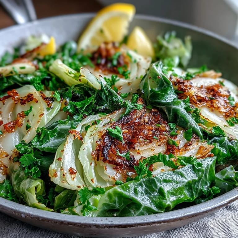 Save The skillet was already hot when I realized I had nothing thawed for dinner, just half a forgotten cabbage wedged in the crisper drawer. I sliced it thin, tossed in some garlic and spices I kept by the stove, and within ten minutes the kitchen smelled like a coastal taverna. My partner wandered in, surprised something so simple could fill the room with that much warmth. That night, humble cabbage became our go-to rescue meal.