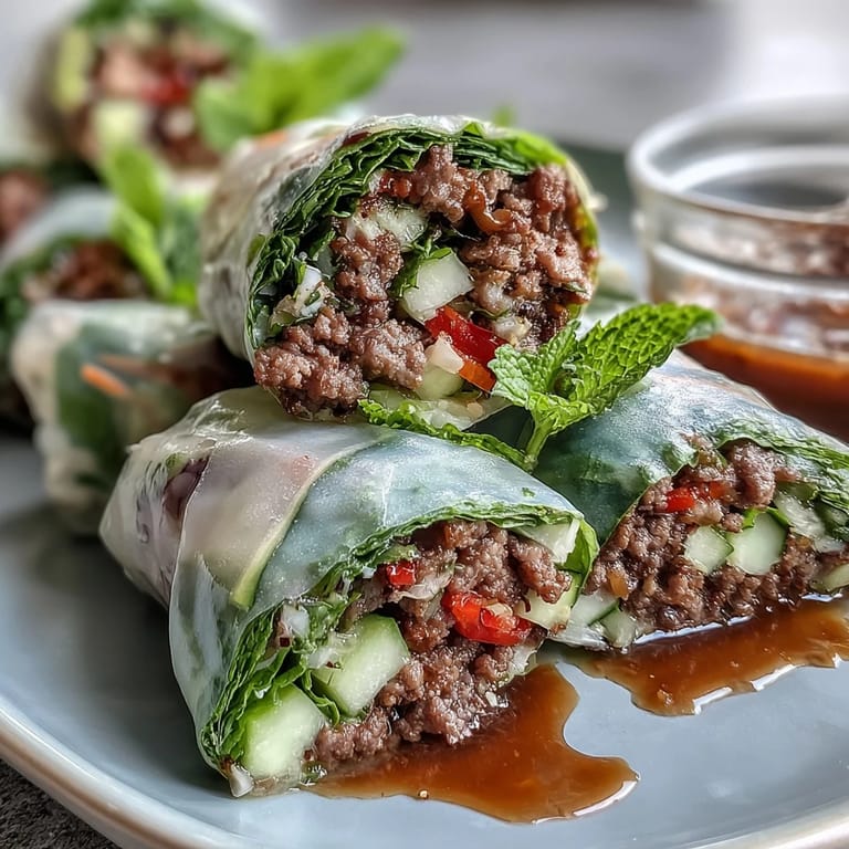 I served these at a summer dinner party when my kitchen was stiflingly hot. Standing over the stove to cook the beef had me sweating, but watching my friends faces light up when they bit into that first cool, crisp roll made every minute worth it. Someone asked for the recipe before they even finished chewing.