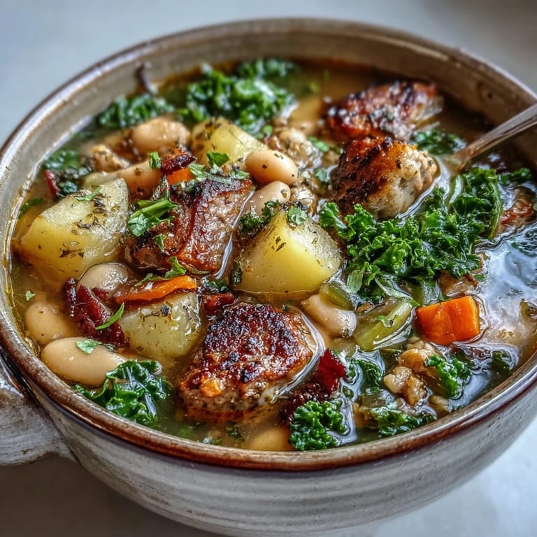 Save My neighbor Maria showed up at my door one October evening with a pot of this soup, still steaming, saying it was what her nonna made when the weather turned crisp. One spoonful and I understood—the way the sausage releases its richness into the broth, how the kale softens into something almost sweet, the potatoes breaking down just enough to thicken everything naturally. I've made it dozens of times since, and it never fails to fill my kitchen with that particular kind of warmth that makes you want to linger over a bowl.